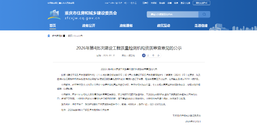 甘肃重庆市2026年第4批次建设工程质量检测机构资质审查意见
