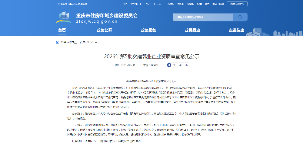 甘肃重庆市2026年第5批次建筑业企业资质审查意见