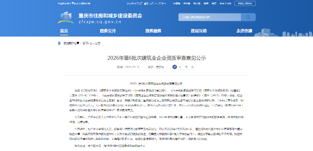 甘肃重庆市2026年第6批次建筑业企业资质审查意见