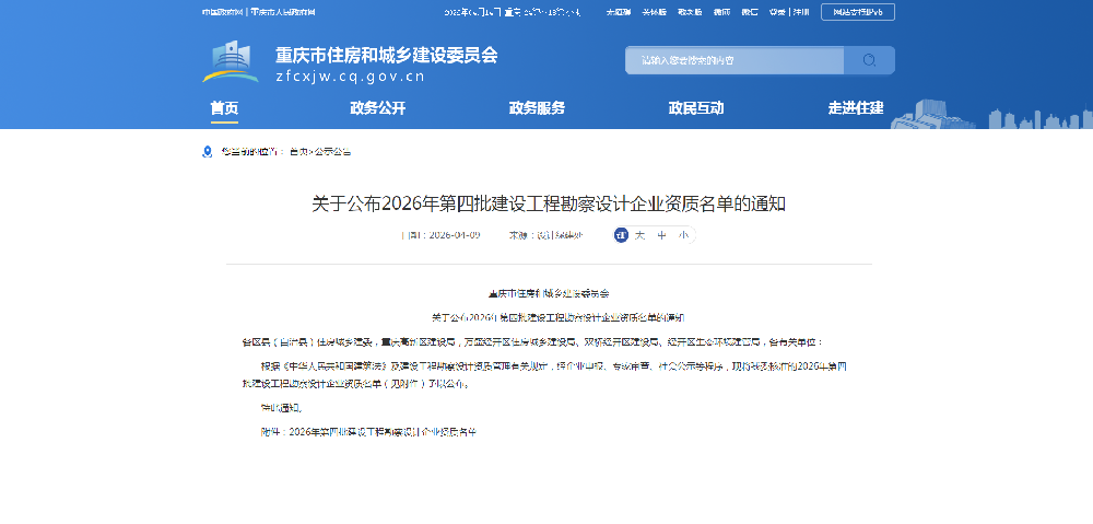 苏州重庆市关于公布2026年第四批建设工程勘察设计企业资质名单