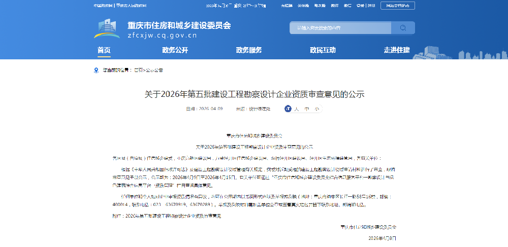 无锡重庆市关于2026年第五批建设工程勘察设计企业资质审查意见